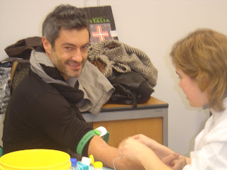 Tive 45 minutos na fila para poder dar sangue para análise, mas é daquele tipo de filas que ninguem se importa de esperar porque realmente aumenta a hipótese de se encontrar um dados compativel.